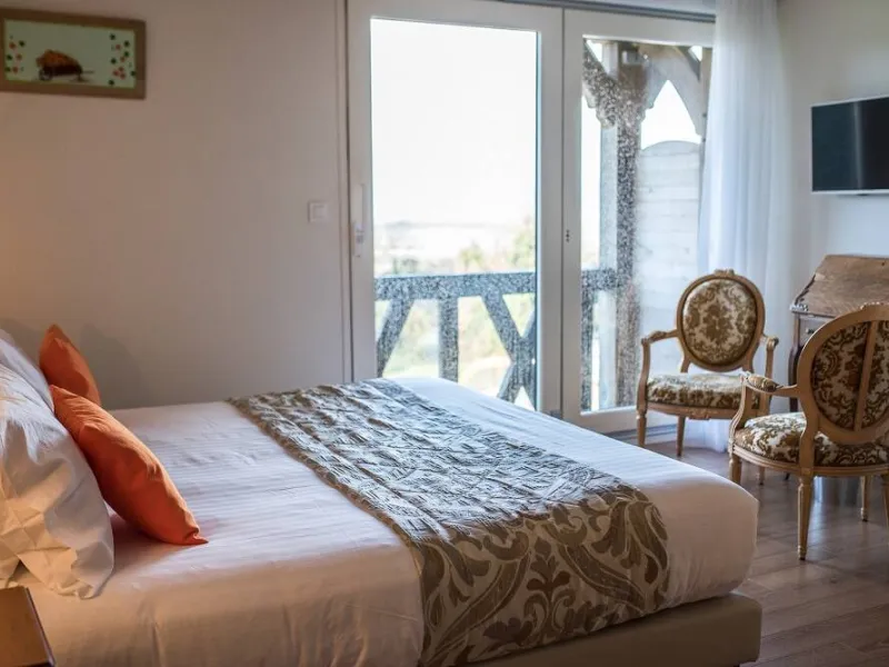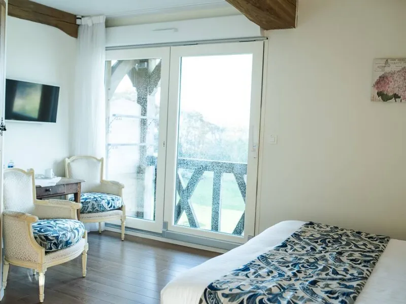 Séjournez près de Honfleur dans ces chambres d'hôtes situées dans un Manoir à l'architecture d'exception, et agrémentée d'une piscine couverte et chauffée sur place.Réalisé en pans de bois traditionnels, le manoir affiche un caractère architectural remarquable. Bénéficiant d'une vue exceptionnelle sur l'estuaire de la Seine, il abrite 5 chambres très confortables disposant chacune d'un balcon ou d'une terrasse, ouverts sur le paysage. L'accueil chaleureux des propriétaires, leur souci du détail et les prestations de grande qualité proposées font de cette adresse une escale de choix. Les 5 chambres disposent d'un lit 180x200 cm et ont chacune une salle d'eau, un wc indépendant, un coin bureau et la tv : Duplex Honfleur (avec terrasse) au rez-de-chaussée propose 2 lits individuels ainsi qu'un wc supplémentaire dans la salle d'eau, Capucine, Hortensia, Rose et Cerisier sont au 1er étage et disposent chacune d'un balcon. Cerise sur le gâteau, la piscine couverte et chauffée ouverte du 20 mars à octobre. A noter, 3 gîtes sont également disponibles sur place.