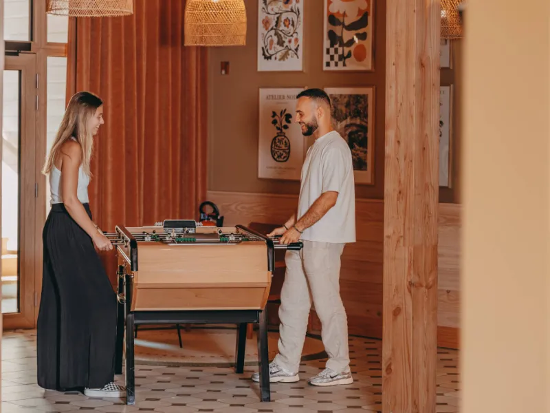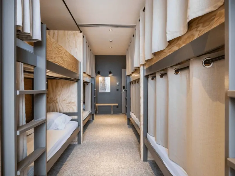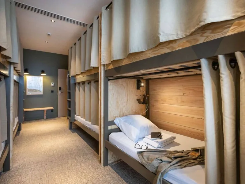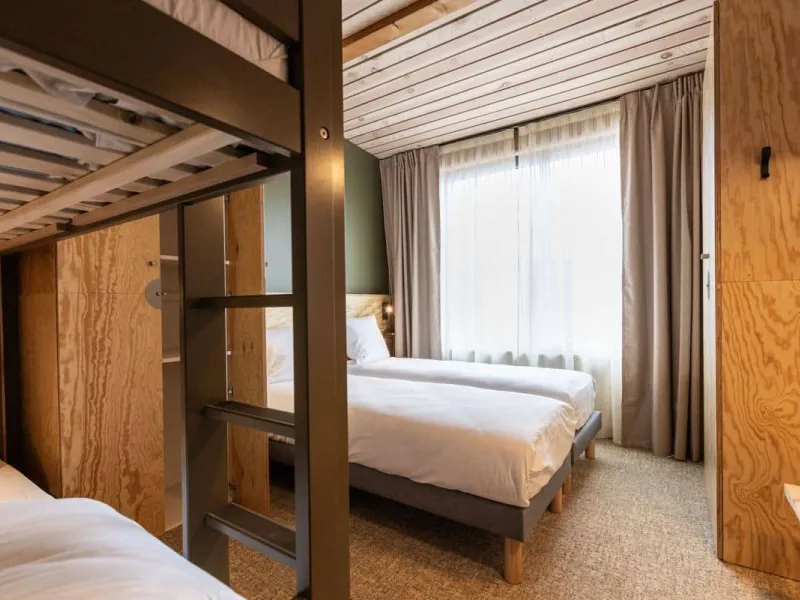 L’hôtel propose 4 types d’hébergement : des dortoirs de 4, 6, 8, 10 ou 12 personnes en format lits superposes. Dortoir de 4 personnes vendu en privatisation, 1 dortoir de 6 personnes est exclusivement réservé aux femmes. Pour plus de confort vous pouvez opter pour une chambre ou un chalet. Optez pour des dortoirs avec salle d’eau privative ou salle d’eau partagée.